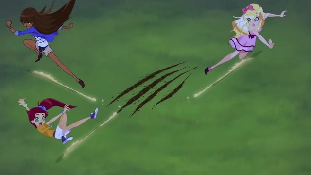 伊梦洁和奥莉安用自己的魔法发出一束水晶刃攻击。墨斯托姐弟俩.躲过一劫