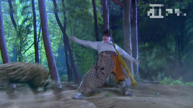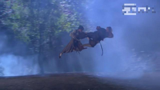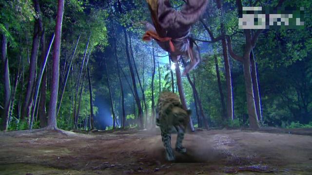 杨过飞起来,豹子也飞起来,杨过成功的点了豹子的穴道