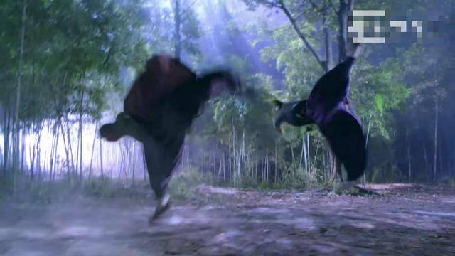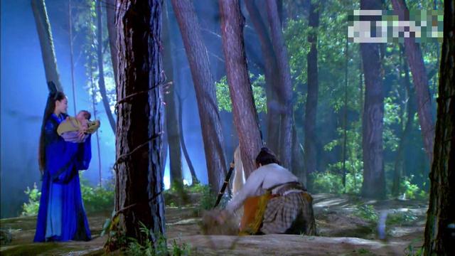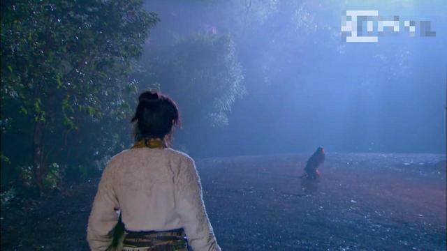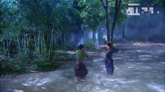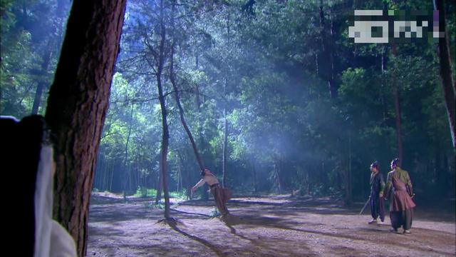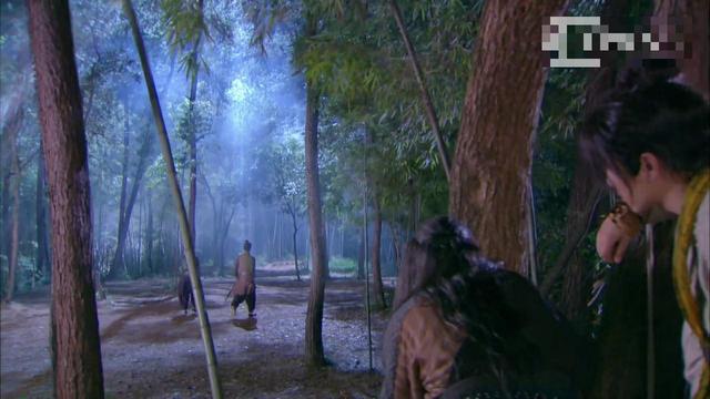 李莫愁拿出冰魄银针准备杀死豹子,但是感觉到背后的不对劲,连忙运气轻功到树上