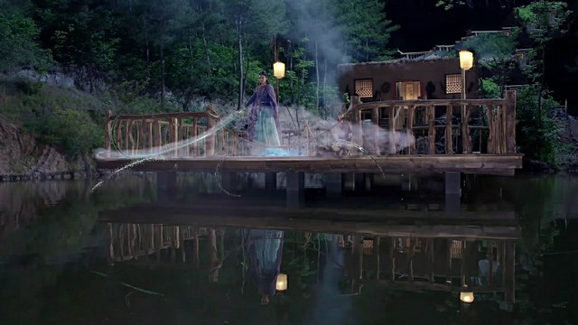 晚上,杨过在郭府附近的树林里看到了美丽的景色,就来带着沁雪去看