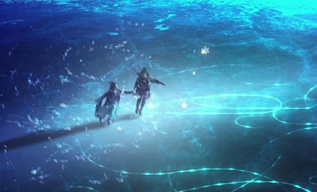 在这漫天的萤火虫和飞雪的陪伴下,杨过和沁雪拉起手在冰上滑了起来,两个人此时此刻忘记了所有的伤痛,和苦恼。杨过忘记了小龙女,沁雪忘记了自己的目的。两个人的眼里和心里只有彼此,相爱也许就是这样吧