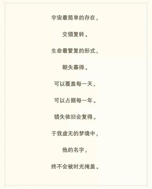 “最简单的存在:1。生命最繁复的形式:8。可以覆盖每一天:7。可以占据每一年:4。错失依旧会复得……”