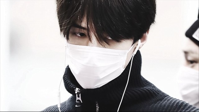 吴世勋穿着黑色高领上衣,还带了一个白色的口罩,夏有椰都替他热得慌。