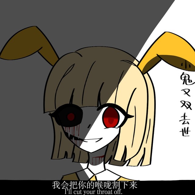 作者是Dark_Deception里面的幸运兔Σ(|||▽|||)应该还有饥饿猪和佩妮鸡的,好像改叫机械玩偶了叭……这个字幕是看他们官方发的一个视频才有感悟的Σ(|||▽|||)其实我没改动的时候有很多血迹的『衣服和耳朵上』又怕过不了审才擦掉的Σ(|||▽|||)