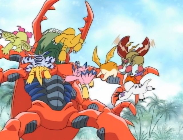 九只数码宝贝就这样扑了上去,想要用自己的力量将古加兽打倒。