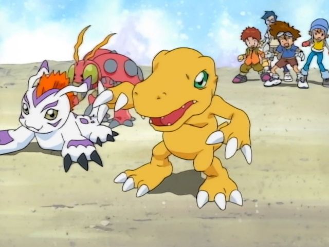 或许是因为体型的大小不同,古加兽用自己的手臂一下子就将数码宝贝们给打了下来,第一个勇敢站起身来的,是亚古兽。