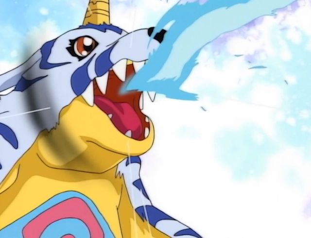 古加兽煽动翅膀想要飞起来攻击孩子们的数码宝贝们。