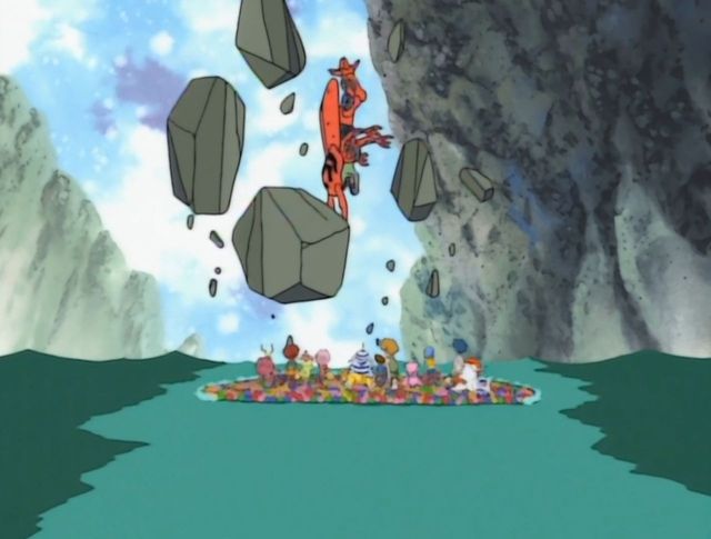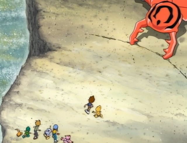 打了胜仗的数码宝贝们向着自己的伙伴们飞奔而来,可能就连他们自己,也不知道自己会打败这么一个大家伙吧!