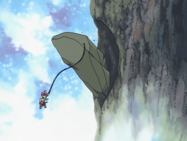 巴鲁兽想用毒蔓藤拉住岩壁,可是岩壁跟悬崖之间有裂缝,又承受不住他们两个的重量,最终也掉了下去。