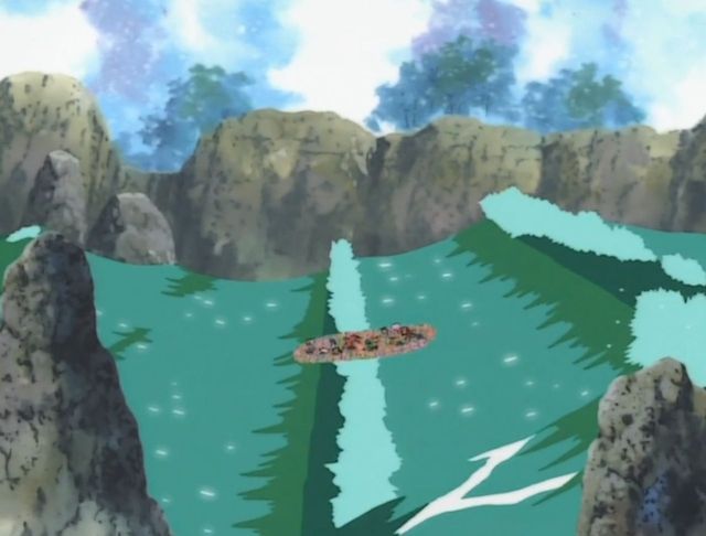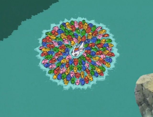 随着哥玛兽的绝招,所有的小鱼都集合在一起,变成了一个像木筏一样的东西,越来越大。