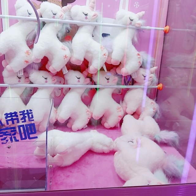 四处都是粉嫩嫩的,各式各样的娃娃机,橱窗里各种玩偶渴望被带回家。