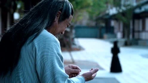 一个身穿玄衣之人丢着一块金子走至门前,那名说书人也刚好出来,玄衣人把金子丢给了说书人之后就摇扇离去。