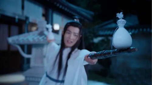 魏无羡及时的出手两坛酒壶一坛在手上一坛则接在剑尾上,但是毕竟不是用手接住,酒壶就在魏无羡眼前砸落在地。