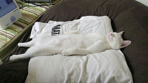 绒绒“半死不活”的躺在沙发上.