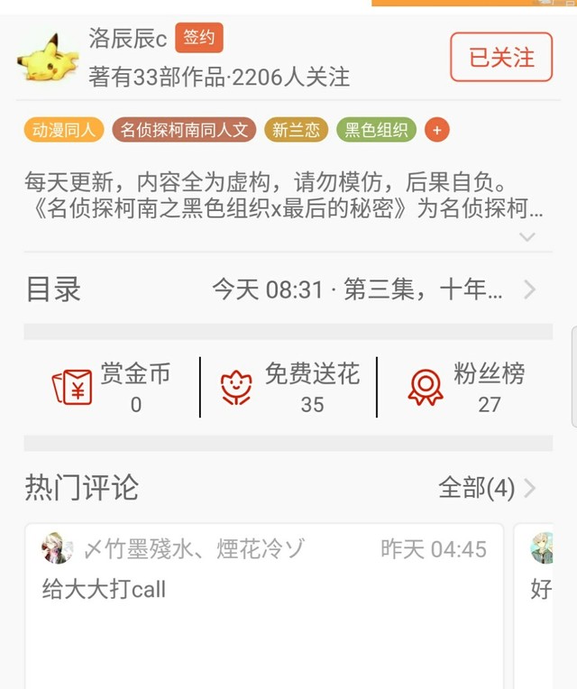 作者辰辰赶紧来支持名侦探柯南之黑色组织x最后的秘密吧,最后的敌人会浮现,所以赶紧来支持一下我这部作品吧。
