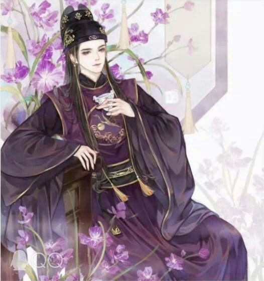 细看那人有一头如墨似的长发。身上穿着一件黑紫色的锦衣,衣袖上面是一大片一大片的曼珠沙华,给人一种美神秘艳丽的感觉。此人转身回眸,似乎天地的颜色都不及他一张容颜,他薄唇轻抿,长长的睫毛投下一片阴影,有些冷酷却妖娆的脸。眼里不自然流露出一种忧愁的情绪。