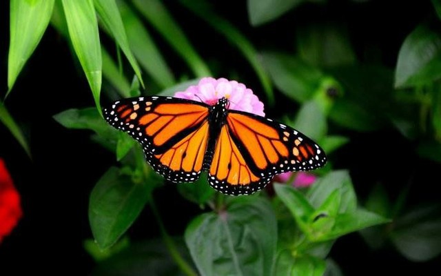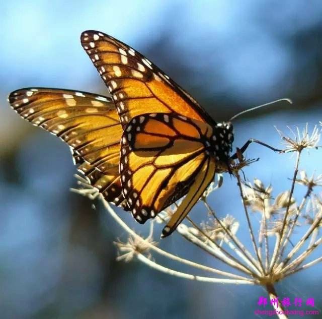 帝王蝶,也称黑脉金斑蝶中型华丽,翅展8.9~10.2厘米,黑脉金斑蝶有的习性,是地球上唯一的迁徙性蝴蝶。