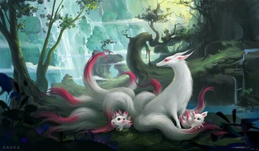 君前缘啊,九尾白狐!呃(~_~;)和两只小宝宝
