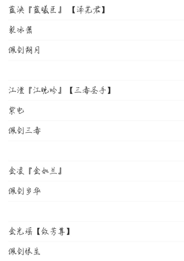 黎韵(白诗离)有一些客串人物的武器没有给我名字,我就自作主张给取了名字,客串者不喜欢的可以私聊我换