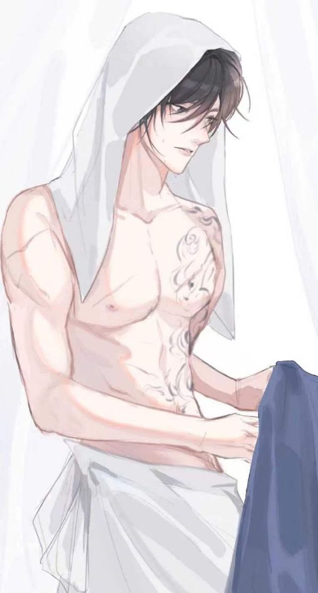 张起灵的身材修长挺拔,手臂健硕,裸露的上半身上,麒麟纹身清晰可辨,他的胸膛结实而有力,腰腹的肌肉紧致性、感,一双修长而又笔直的腿,每一处线条都恰到好处。虽然他给人的感觉是淡漠疏离,但他浑身散发出的那股迷人的性、张力。