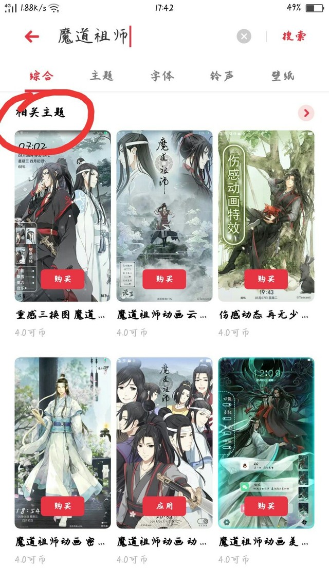 之后呢,你们就可以看见魔道祖师的壁纸和字体啦~(壁纸还可以设置成动画的)