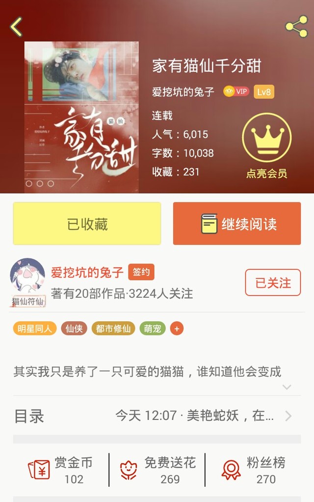 兔子求藏《家有猫仙千分甜》,本兔子觉得入坑不亏!!!
