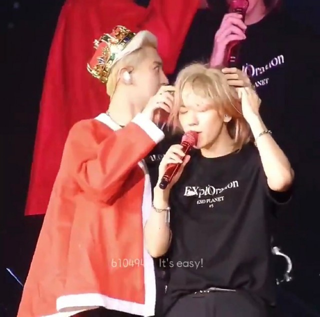 只见朴灿烈拿起了个假发往边伯贤头上套