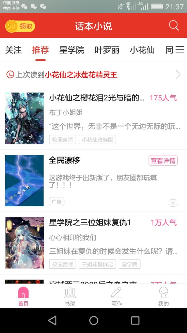 作者布丁哈哈哈哈,我写的这么多天的作品,终于上推荐了啊!
