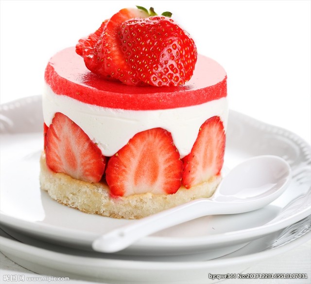 牙齿相互接近,将草莓和奶油混合,没了奶油的腻,却带上了草莓的酸甜