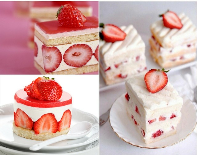 好几款草莓蛋糕映入眼帘