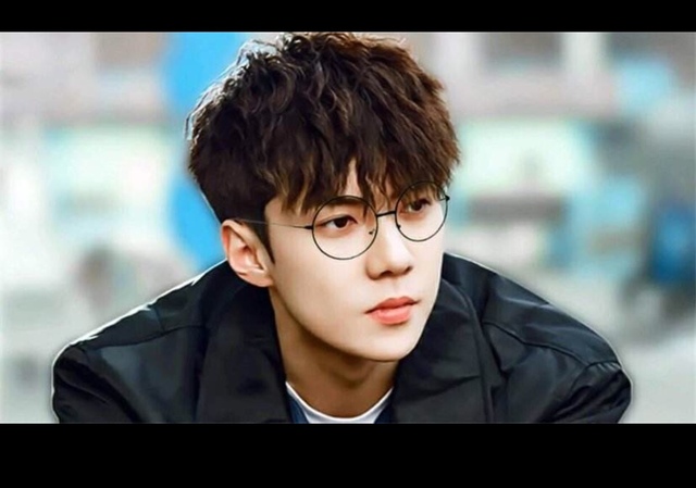 吴世勋带着黑边眼镜,神情看似冷漠却有暗含几分羞涩.