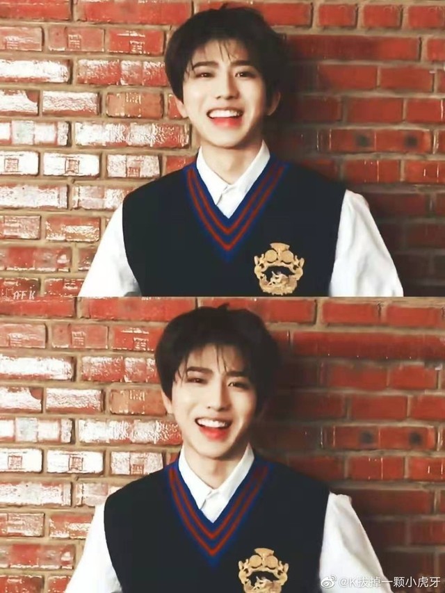 蔡徐坤笑得合不拢嘴,他露着一口洁白而整齐的牙齿