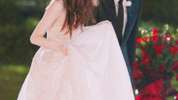 在旁边看灯光的嘉羿见了,悄悄走到她的身旁帮她提起裙摆