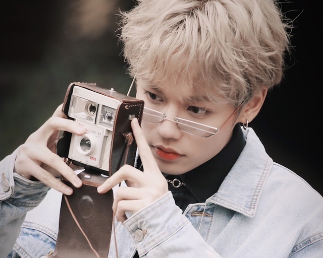 林彦俊坐在靠窗的位置,黑色的衬衫外套一件浅色牛仔衣,搭配黑色破洞牛仔,头发染成了浅亚麻色,烫成微卷的模样,正摆弄着手中的拍立得。