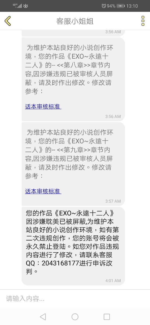 我不知道怎麼回事,我的作品突然被他們說違規了,我根本就不知道哪裡違規抱歉,這段時間我可能不會更新了可能要等到這本小說恢復之後,然後再做對決定,非常抱歉