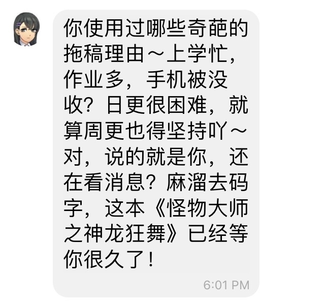 虾米我拖稿没有理由,就是懒得更!
