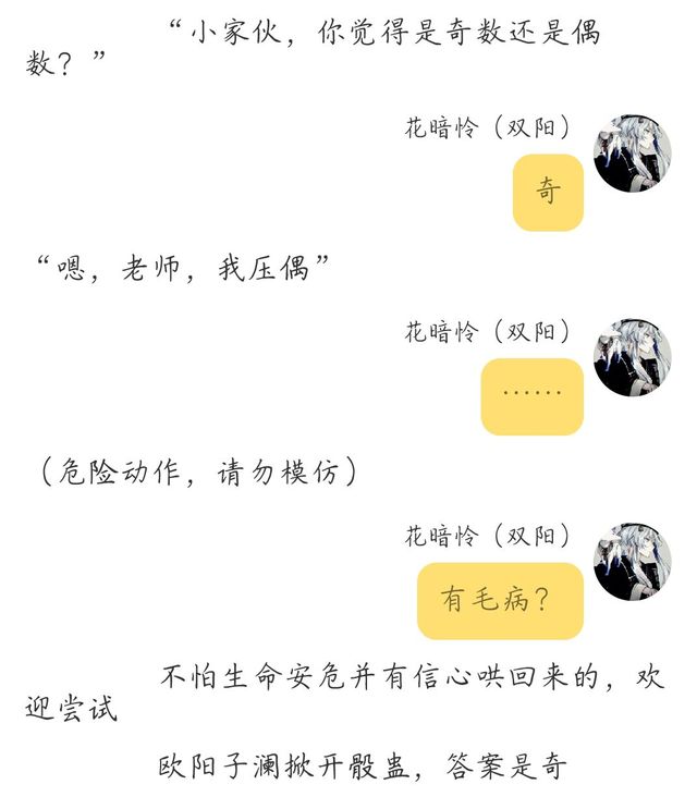 花暗怜(双阳)安,你对我的性格感觉怎么样?