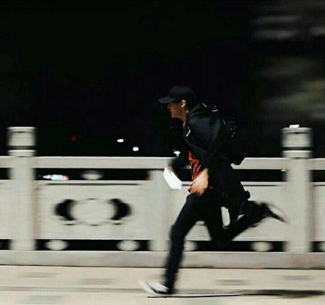 漆黑的夜幕下,他戴着黑色的帽子穿着黑色的长衣和长裤,仿佛要与那夜色融为一体般。