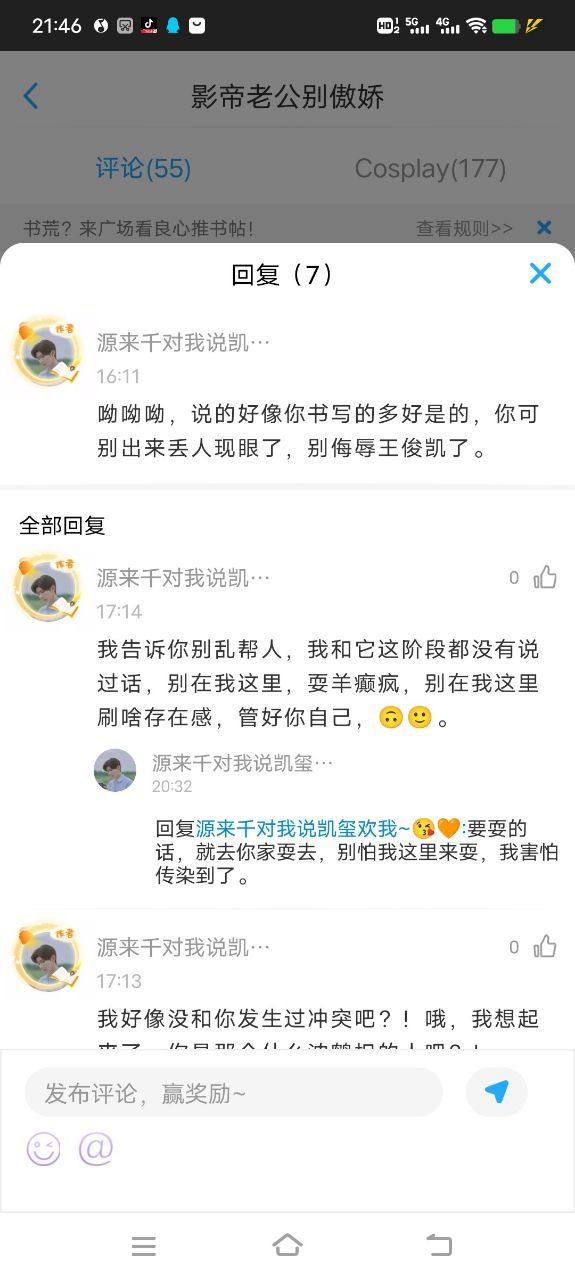 我因此知道了这件事情,所以当时就觉得很恶心,大神的粉丝群里呢就有很多人看不下去,然后把这个人的作者id爆了出来