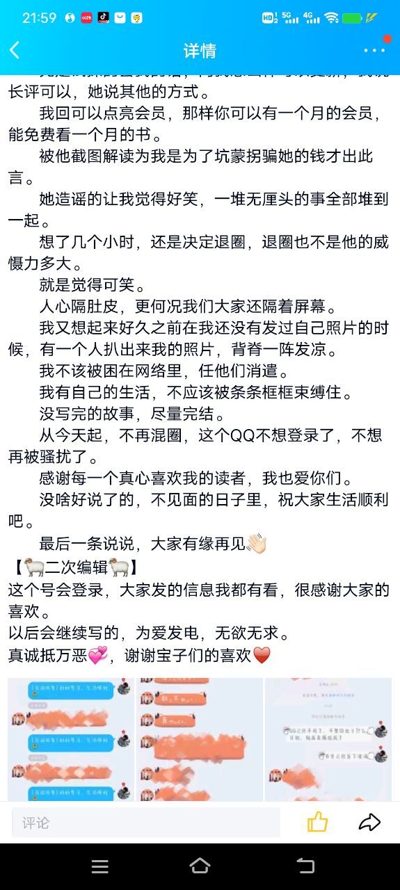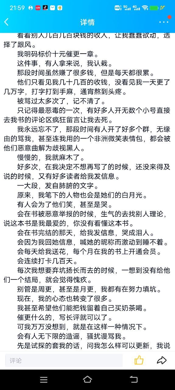 然后那个大神后来觉得跟她纷争没有意义而且有点忍受不了了,发了QQ空间的说说决定以后再也不写书了