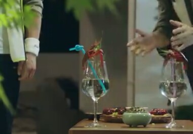 陶诚(乔晨)(尴尬而又不失礼貌的微笑。)啊……好……(两个人干杯。)大哥(话才刚刚完,他喝了一口,就把喝的饮料喷出来了。)