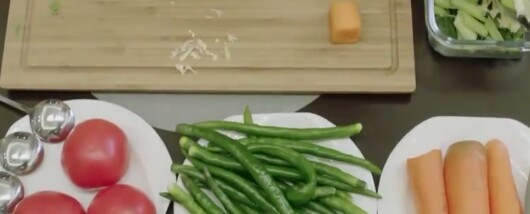 齐樱(瑛)明天路夏要比赛,给他准备点吃的,先来点西红柿,给他补充维生素C,(拿起一个西红柿。)再放点胡萝卜,对眼睛好开始。(切胡萝卜。)再来点玉米、蘑菇,路夏每天都要训练,肯定需要补充体力。