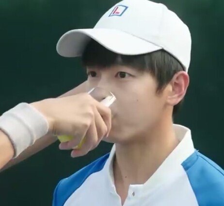 下一个是百扬,他把球打错了位置,吓得球拍都掉了。然后严智明,又递来了一杯‘严汁’,面带微笑。