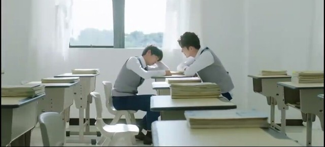 这边,路夏不知不觉就在教室里睡着了,乔晨看到了他,走了进来,把手放他鼻子上,他就醒了。