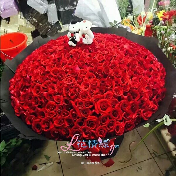 拿着玫瑰花