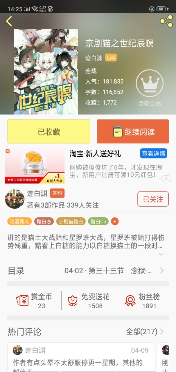 作者字数也在不知不觉的达到了116852字了,人气也是妥妥哒