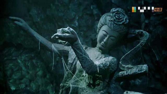 天女石像上布满了一堆蜘蛛网,看着挺祥和的谁又能想到他居然是会动会吸食人魂魄的呢!