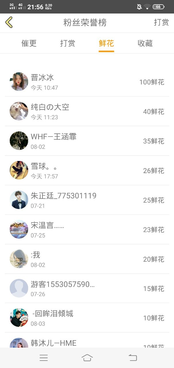 梧桐“感谢最近大家给我献的花花,希望大家继续支持我。爱你们😘”