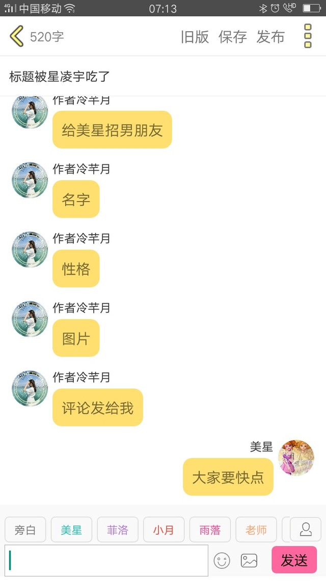 作者冷芊月给美星招男朋友
