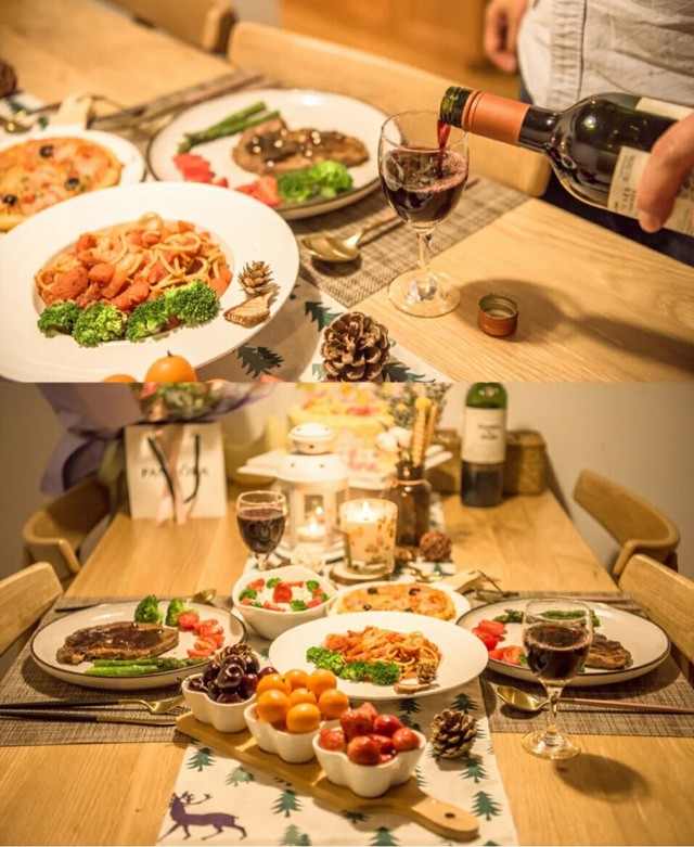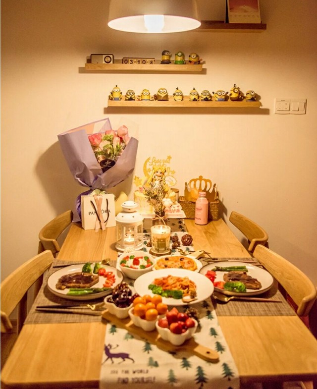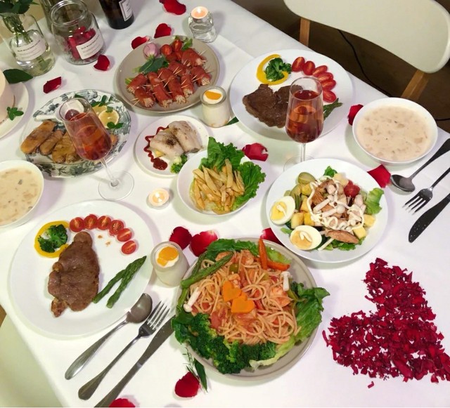 很快,一桌烛光晚餐就做好了